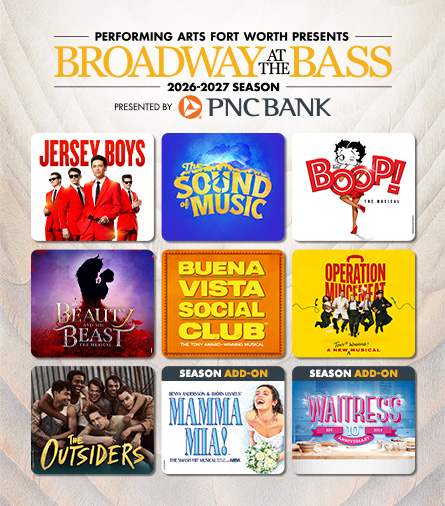 This new season includes Jersey Boys, The Sound of Music, BOOP!® The Musical, Disney's Beauty and the Beast, Buena Vista Social Club™, Operation Mincemeat: A New Musical and The Outsiders. Plus, returning to Fort Worth as Season Add-Ons: Mamma Mia! and Waitress.