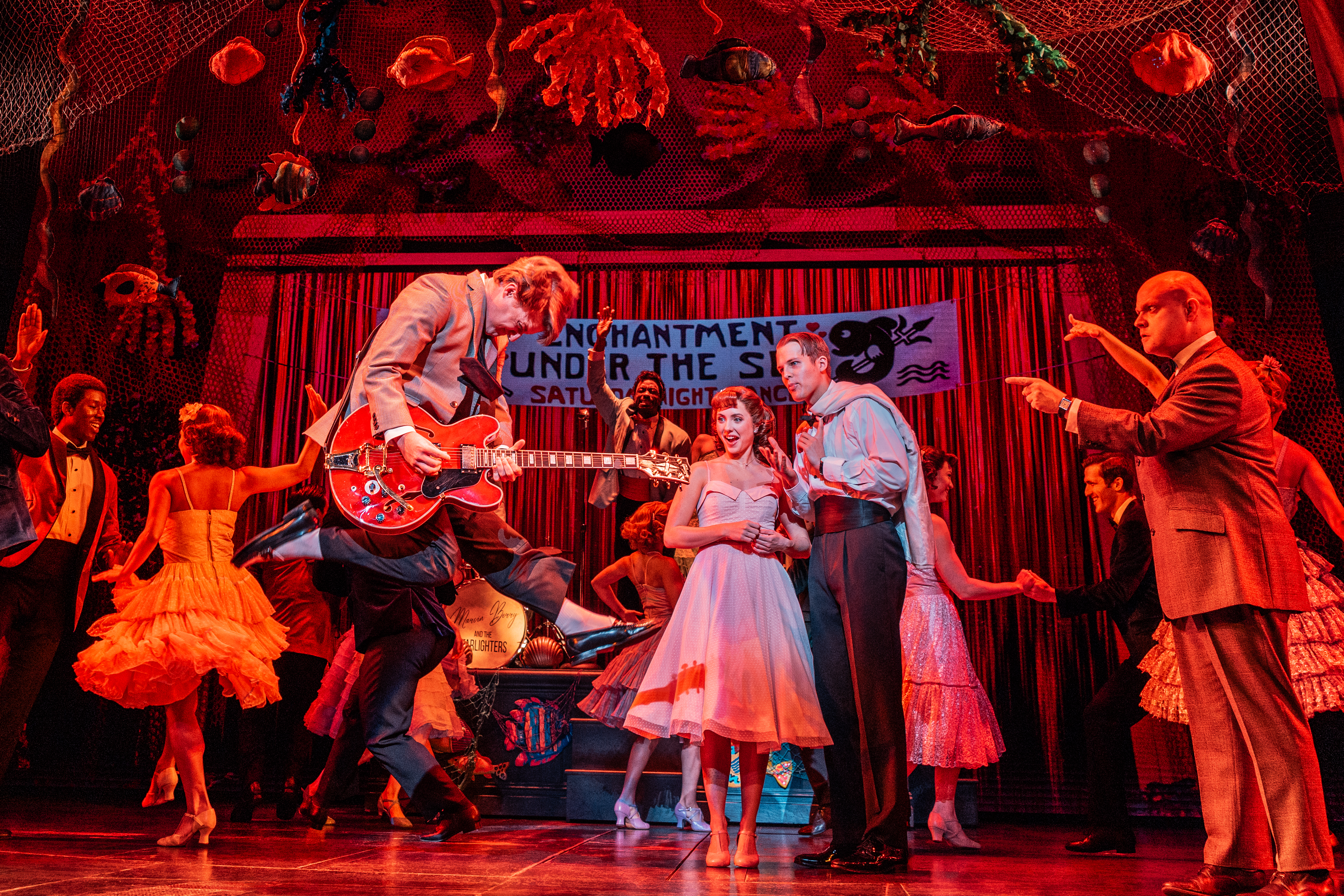 Cartreze Tucker (Goldie Wilson) and the First National Touring Company of BACK TO THE FUTURE: THE MUSICAL. Photo by Matthew Murphy and Evan Zimmerman, 2024.
